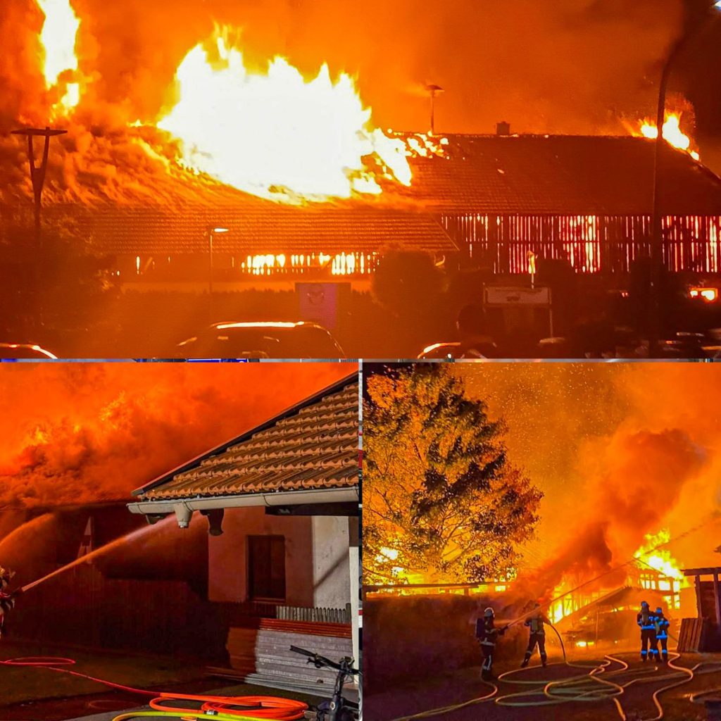 3 Millionen Euro Schaden: Schreinerei, Lagerhalle und Scheune in Flammen – mehrere Wohnungen in Gefahr