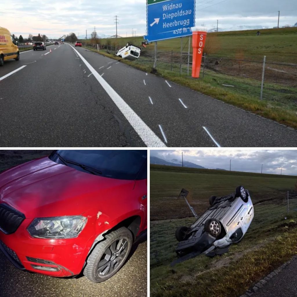 Ein 51-jähriger Mann fuhr auf der Autobahn A13 von Chur in Richtung St. Margrethen. Zur gleichen Zeit fuhr der 34-jährige Mann mit seinem Lieferwagen vor ihm in dieselbe Richtung. Der 51-Jährige bemerkte den vor ihm fahrenden Lieferwagen zu spät und leitete eine Vollbremsung und ein Ausweichmanöver nach rechts ein.