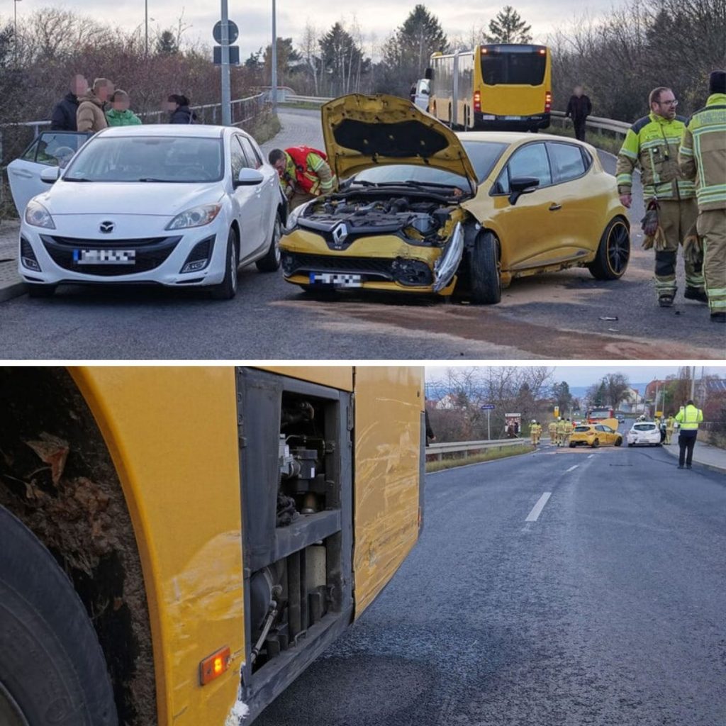Alkoholisierter Renault-Fahrer rast am Dresdner Stadtrand in Mazda und kracht gegen Bus