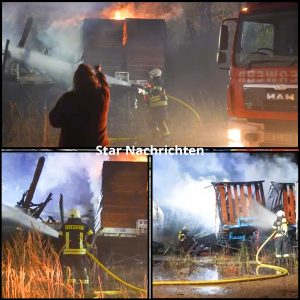 Mehrere Lastwagen von beliebter Schausteller-Familie im Landkreis Oberhavel (Brandenburg) brennen lichterloh: Rund 40 Weihnachtsbuden, Deko, Glühweinmaschinen und Sitzmöbel für Berliner Weihnachtsmarkt werden ein Raub der Flammen. Die…