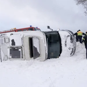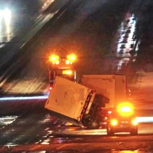 Ein Sturmtief sorgte in Sachsen und Sachsen-Anhalt in der Nacht zu Samstag unter anderem für glatte Straßen. Das wurde auch einem Lastwagen zum Verhängnis