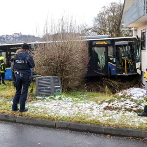 Schock für Hausbewohner in Fulda am Samstag: Ein Linienbus ist am Morgen gegen ein Einfamilienhaus gerollt.