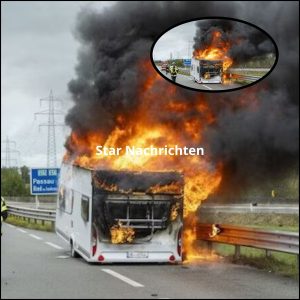 Wohnanhänger brannte auf Autobahn plötzlich aus