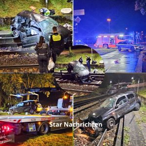 Schwerverletzte Frau zurückgelassen: Kleinwagen überschlägt sich und landet auf Bahngleisen in Karlsruhe – zwei Männer flüchten, schwerverletzte Mitfahrerin bleibt zurück