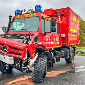 Feuerwehr-Unimog schwer beschädigt: Zusammenstoß mit Traktor fordert eine verletzte Person