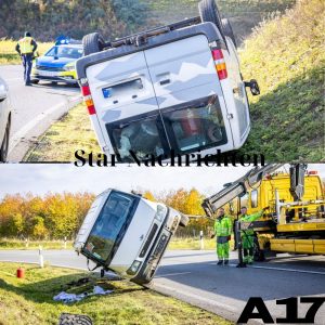 Kleintransporter überschlägt sich auf A17: Polizei ermittelt gegen Fahrer