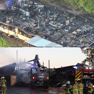 Feuerwehr im Großeinsatz: Lagerhalle mit Oldtimern brennt nieder