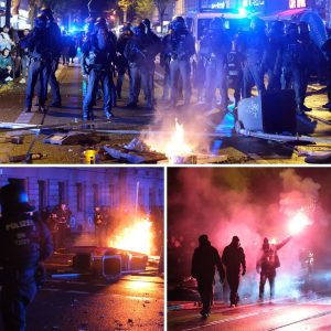 Brennende Barrikaden und Pyros auf der Leipziger Eisenbahnstraße