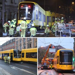 Tram-Bergung gestaltet sich schwierig: Sechs Verletzte nach Bahn-Unfall in Pieschen