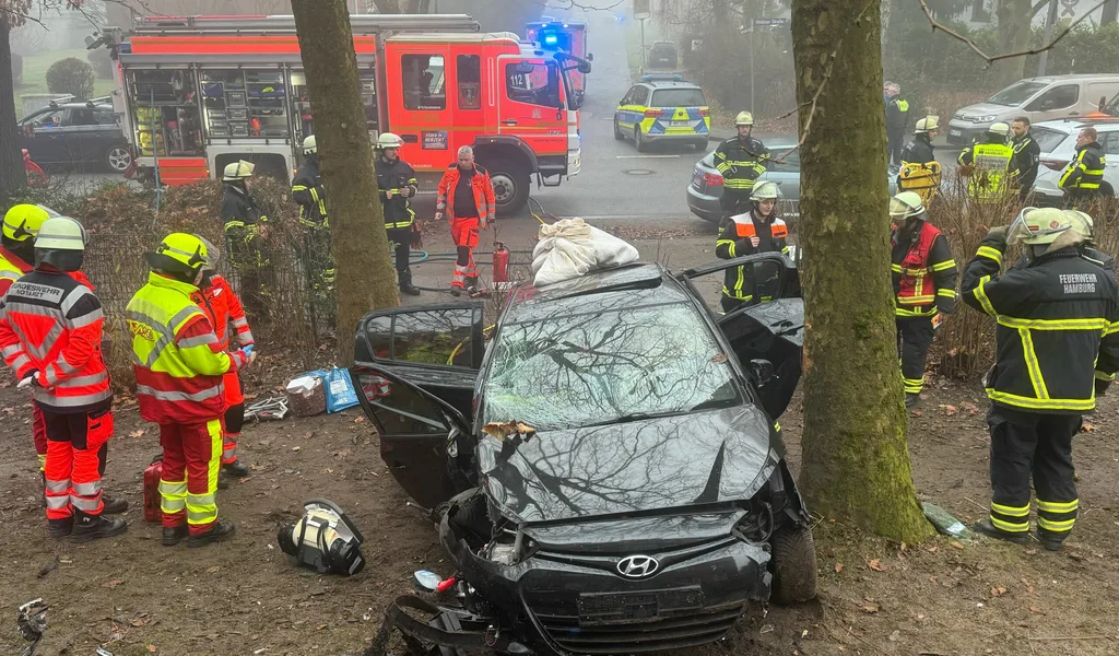 Eine Frau hat am Samstag in Rahlstedt mit ihrem Pkw mehrere Fahrzeuge touchiert – anschließend kam sie von der Straße ab und prallte gegen einen Baum. Die Feuerwehr musste die Fahrerin aus ihrem Auto schneiden.