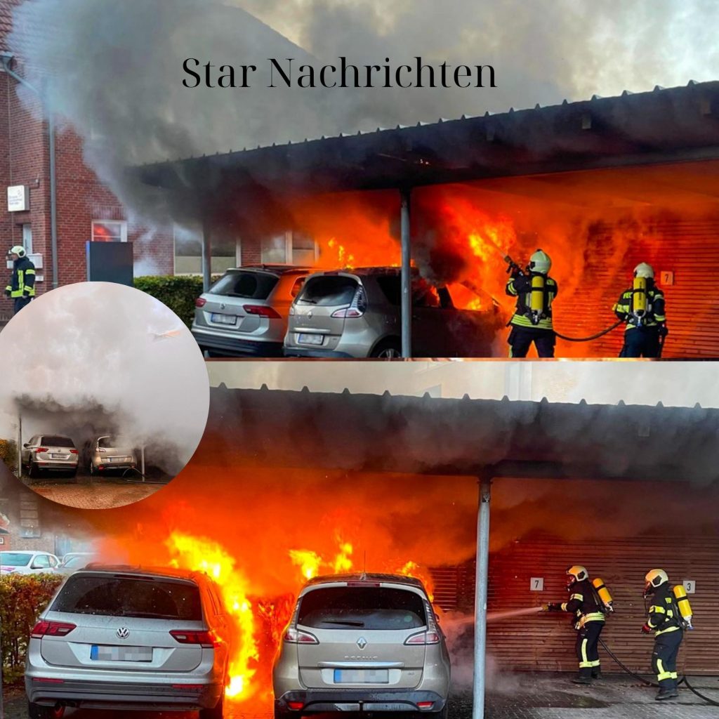 Zwei unter einem Carport abgestellte Fahrzeuge standen am Samstagmorgen in Aurich in Flammen.