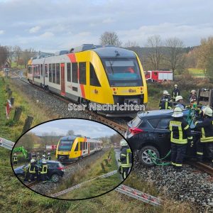 Zug erfasst Auto und schleift Wagen rund 200 Meter mit, Fahrer verletzt