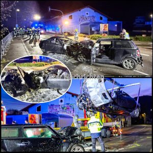 Mercedes rast vor Polizei davon und kracht frontal in Mini: Fahrer entgeht knapp dem Flammen-Tod