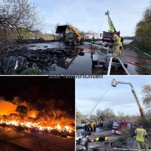Reifenlager nahe A14 in Vollbrand: Anwohner per Warn-App informiert