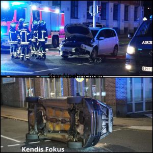Auto kippt nach Kreuzungscrash auf Seite: Prager Straße voll gesperrt