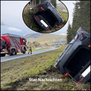 Schwerer Verkehrsunfall am Donnerstagvormittag auf der B95 bei St. Andrä (Salzburg): Ein Elektroauto kam aus unbekannter Ursache von der Fahrbahn ab und blieb am Dach liegen. Der…