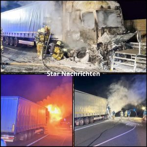 Nächtliches Feuer auf A1: Zugmaschine steht in Flammen – Feuerwehr verhindert Papier-Inferno