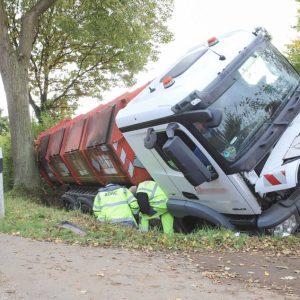 Lkw landet im Graben: Verkehrsteilnehmer müssen mit Vollsperrung rechnen