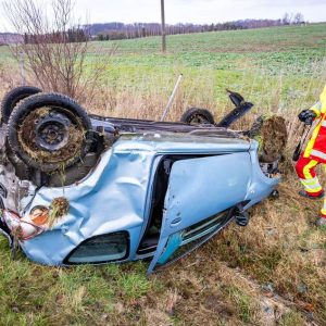 Überschlag auf B172: Toyota-Fahrerin landet im Straßengraben
