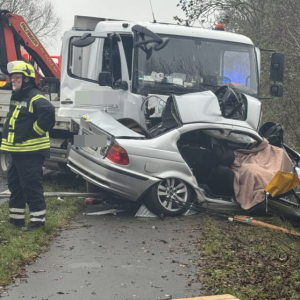 Der BMW krachte in den Gegenverkehr, drei Menschen starben Foto: Nord-West-Media TV Drochtersen – Die Seiten des BMW sind völlig zusammengedrückt, die Scheiben zersprungen, überall liegen Trümmer:…