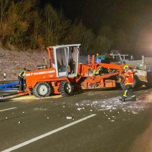 Rums! Tonnenschwere Baumaschine fällt von Lastwagen und blockiert stundenlang die A8
