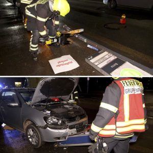 Die Feuerwehr Bruchsal wurde Samstagabend zu einem schweren Verkehrsunfall auf die B35 bei Bruchsal alarmiert: Ein aus Richtung Heidelsheim kommender Kleinbus, der ein Wohnmobil auf einem Transportanhänger…