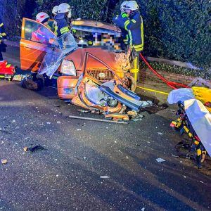 Frontal in den Gegenverkehr: Feuerwehr muss eingeklemmten Fahrer nach Frontalcrash befreien