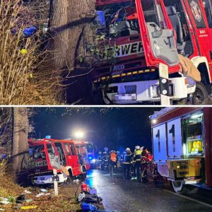Feuerwehrauto kracht nach Einsatz in Baum: Neun Verletzte