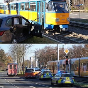 Auto kracht gegen Straßenbahn: Zwei Verletzte nach Crash in Leipzig