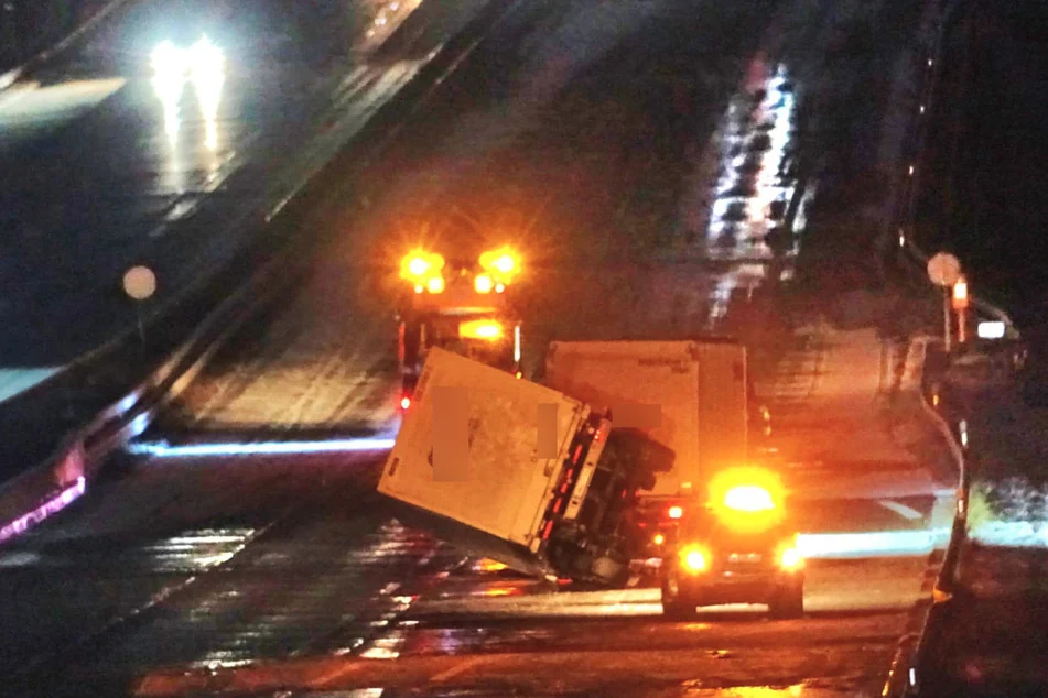 Ein Sturmtief sorgte in Sachsen und Sachsen-Anhalt in der Nacht zu Samstag unter anderem für glatte Straßen. Das wurde auch einem Lastwagen zum Verhängnis