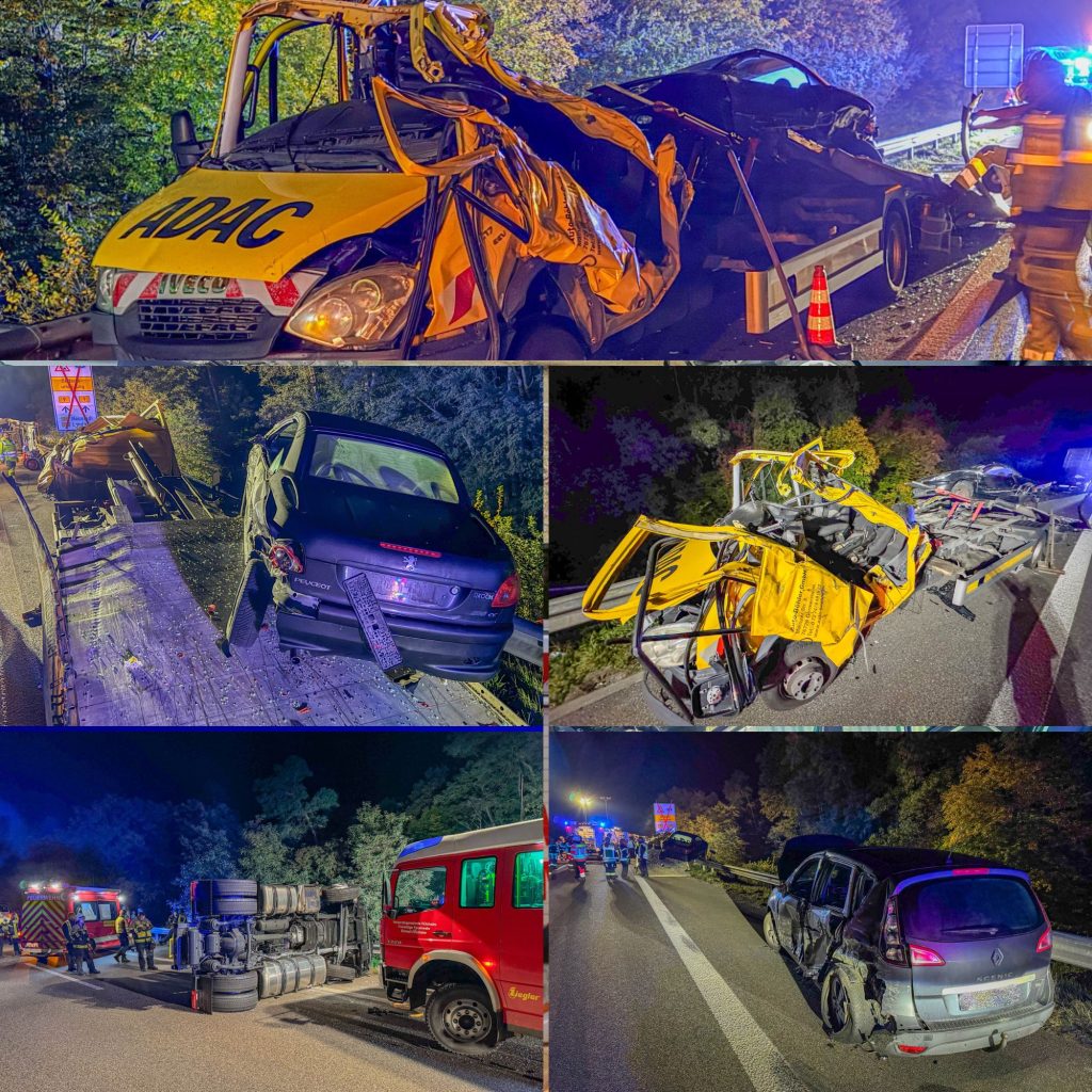 Der Fahrer eines Abschleppdienstes war mit der Bergung eines Pannenfahrzeugs auf dem Seitenstreifen beschäftigt. Auch ein Fahrzeug eines Ersthelfers war dort abgestellt. Alle Fahrzeuge waren ordnungsgemäß mit Pylonen und Blitzleuchten abgesichert.