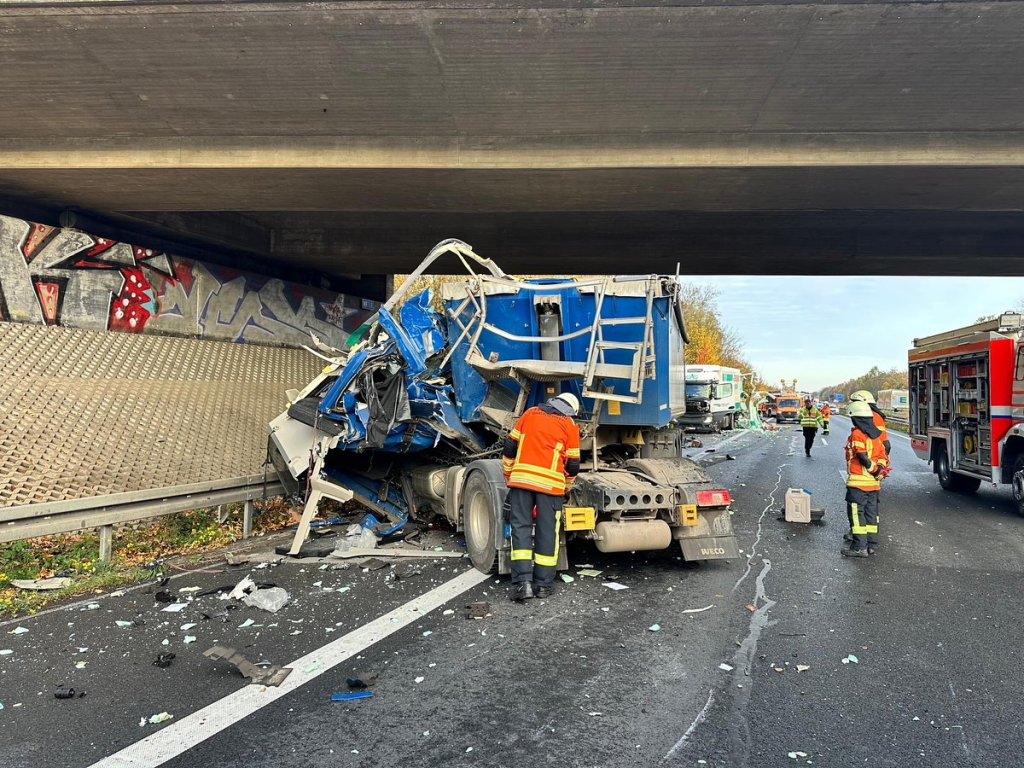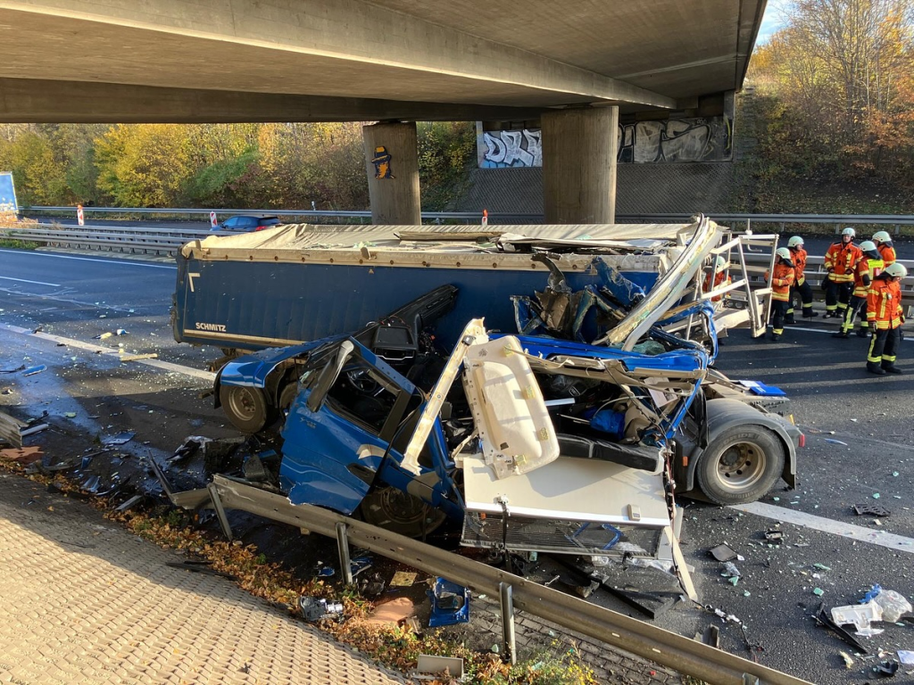 Fahrerkabine nach schwerem Lkw-Unfall auf A36 abgerissen und total zerfetzt