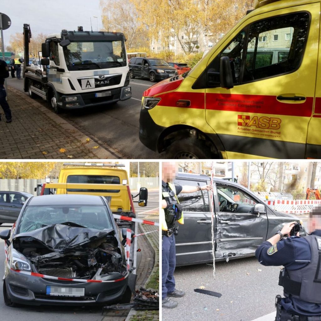 Fast zeitgleich: Laster krachen in Chemnitz mit Autos zusammen