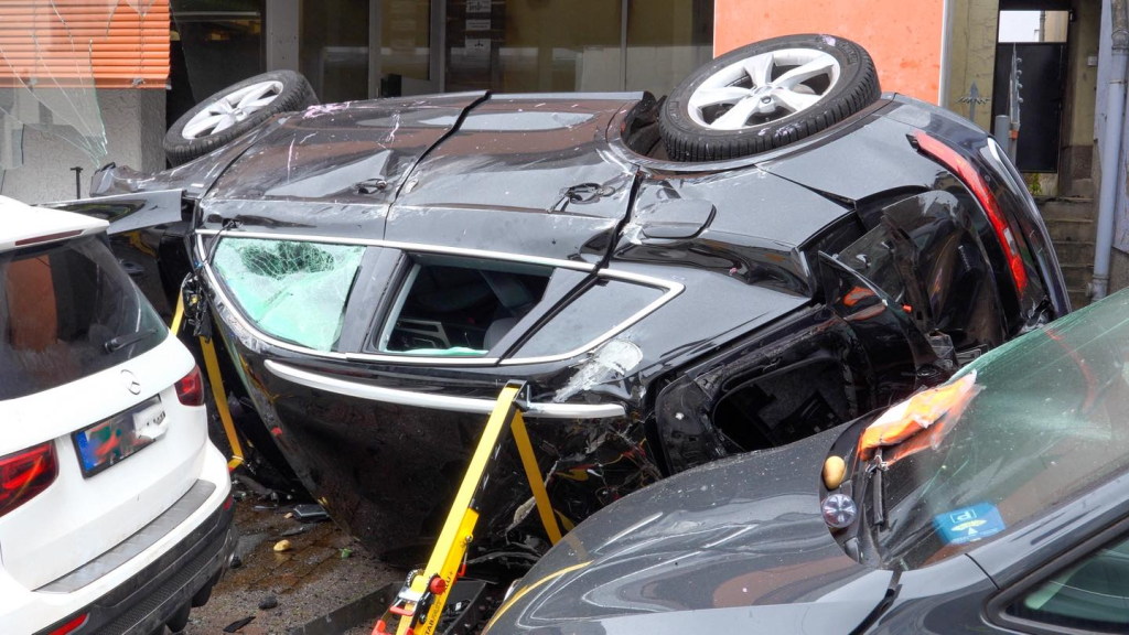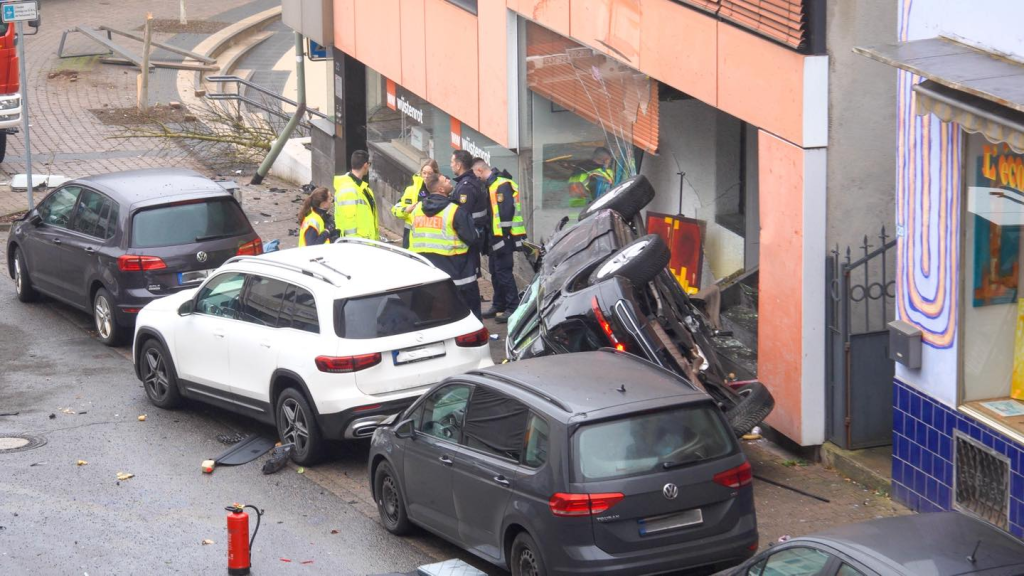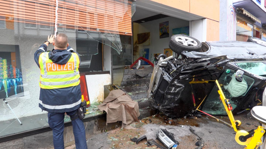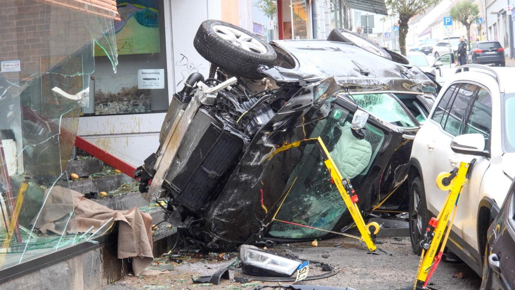 Ein spektakulärer und folgenschwerer Unfall hat sich am Freitagmittag im Zentrum von Lebach bei Saarlouis ereignet: