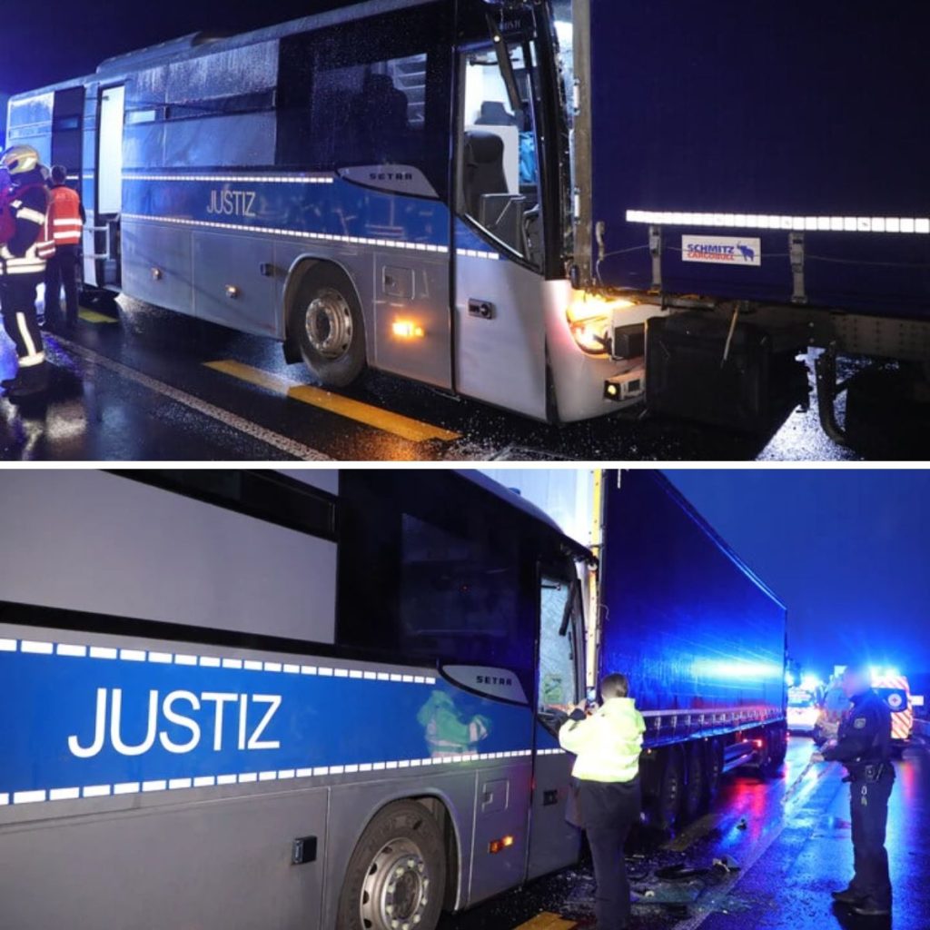 “Dabei fuhr er einem ukrainischen Laster ins Heck”, so der Polizeisprecher am Mittwoch. Zunächst waren die Ordnungshüter davon ausgegangen, dass sich der Busfahrer (61) sowie zwei Häftlinge leicht verletzt hatten.