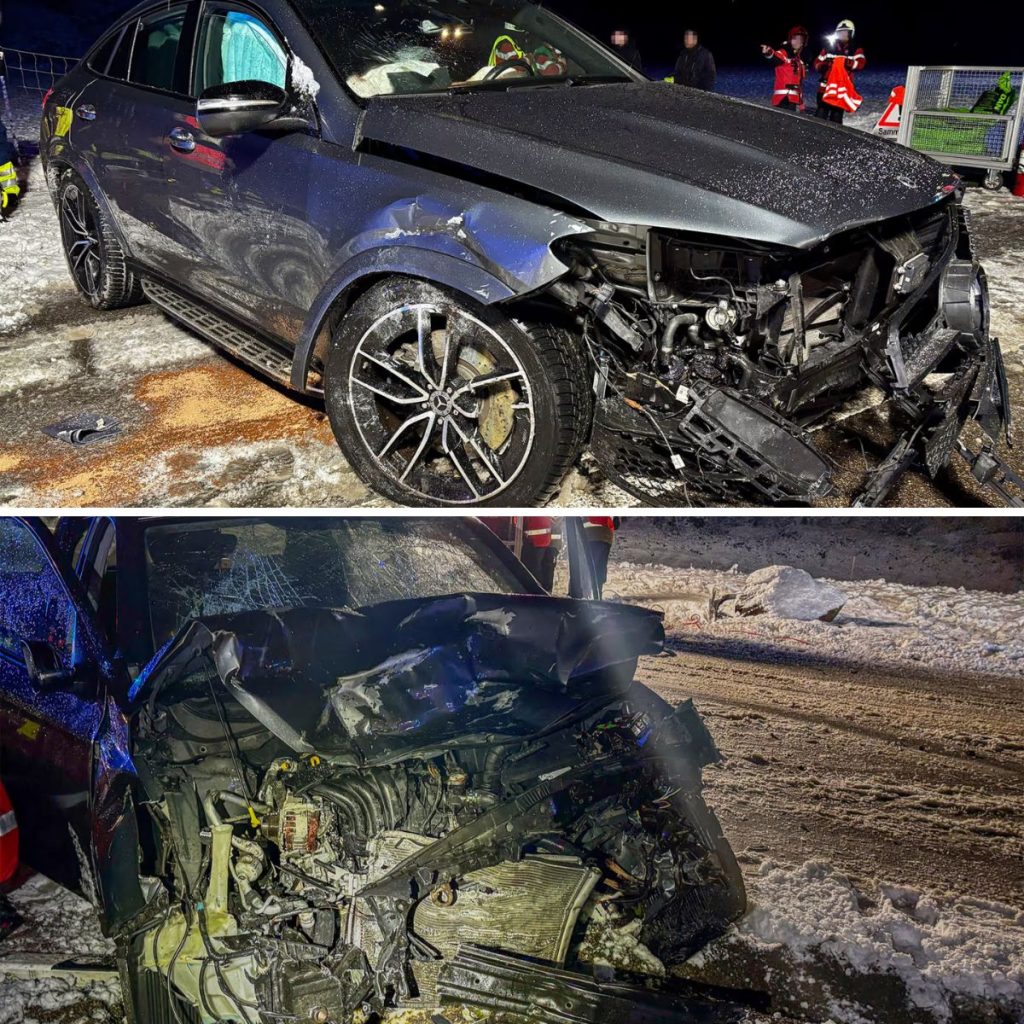 Kurz vor dem Dorfeingang verlor dieser auf der schneebedeckten Fahrbahn die Kontrolle über seinen Mercedes.