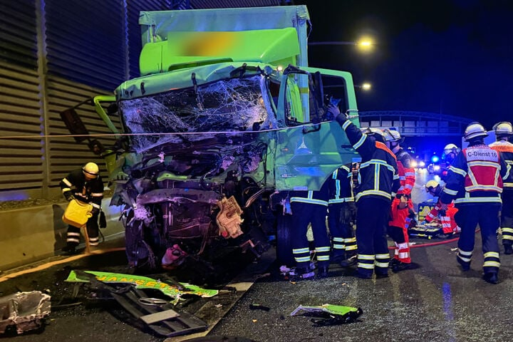 Lastwagen krachen auf A7 ineinander! Fahrer schwebt in Lebensgefahr