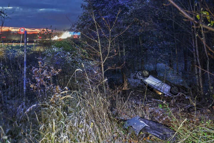Mercedes kommt auf A4 von Fahrbahn und landet 70 Meter weiter auf dem Dach