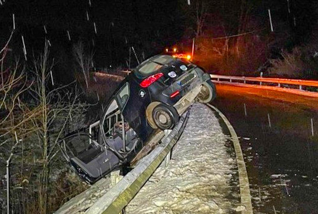 Ein 63-jähriger aus der Verbandsgemeinde Hermeskeil kam dabei mit seinem PkW in einer Linkskurve nach links von der Fahrbahn ab und geriet auf die Schutzplanke, wo er oberhalb einer Böschung in Unfallendstellung geriet. Der unverletzte Fahrer konnte sich selbständig aus dem Fahrzeug befreien.