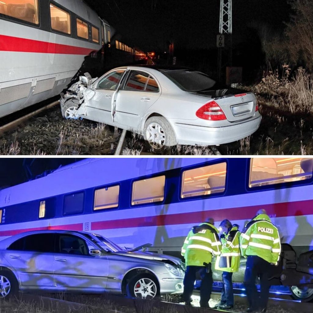 Mitten auf Bahnübergang: Vollbesetzter ICE rammt Auto