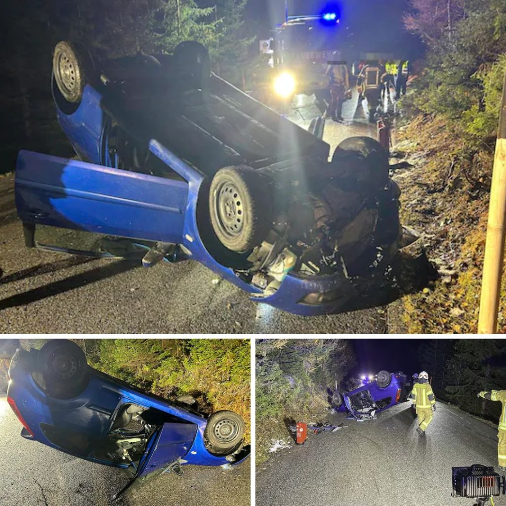 Nach heftigem Überschlag landete Auto auf dem Dach