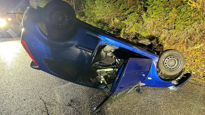 Nach heftigem Überschlag landete Auto auf dem Dach