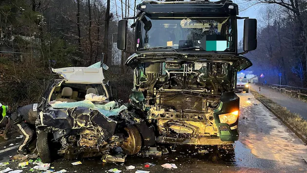 Der folgenschwere Zusammenprall ereignete sich kurz vor 16 Uhr auf der Rinnegger Straße vor den Toren von Graz. Ein 57-jähriger Pkw-Lenker geriet aus unbekannter Ursache auf die Gegenfahrbahn, wo er frontal in einen Lkw krachte.
