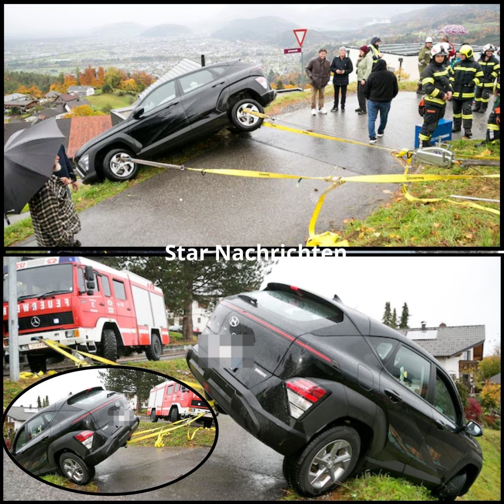 Beinahe wäre der Wagen über eine steile Wiese abgestürzt, glücklicherweise blieb das Auto an der Kuppe hängen. Doch das Zittern ging weiter, denn verlassen konnten die beiden Insassen den direkt vor dem Abgrund baumelnden Wagen nicht. Also setzten sie einen Notruf an.