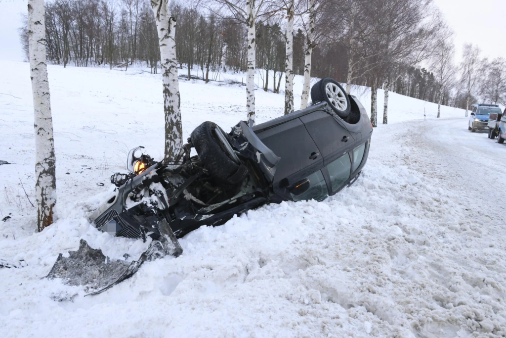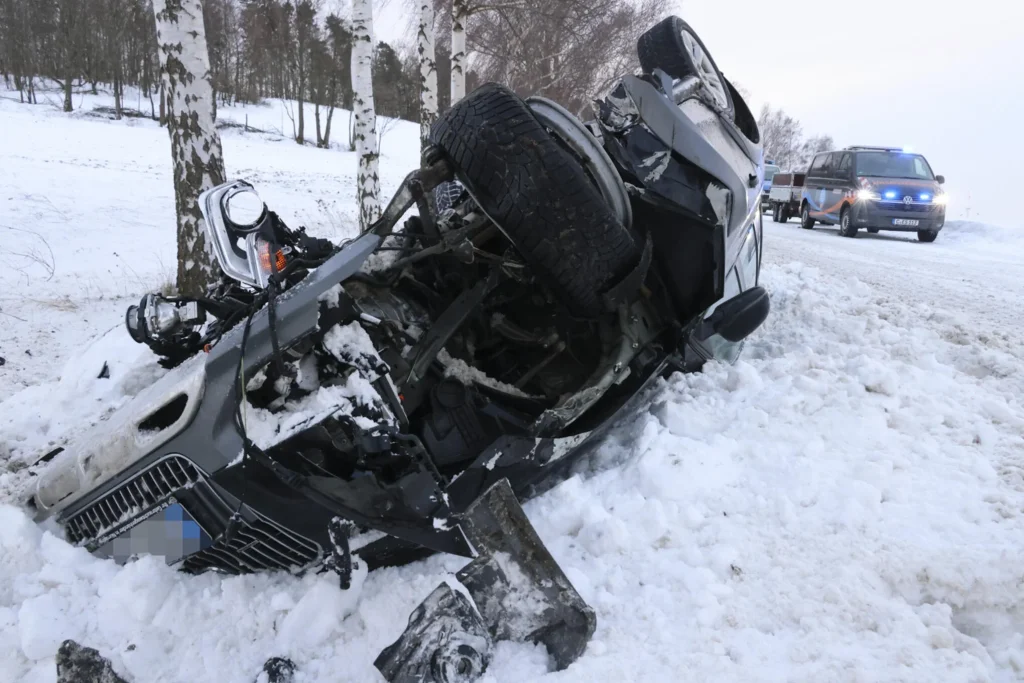 Ein PKW Audi kam am Sonntagnachmittag nach rechts von der winterglatten Fahrbahn der B 180 ab, überschlug sich und blieb auf dem angrenzenden Feld liegen. Dabei erlitt der Fahrer nach dem derzeitigen Kenntnisstand leichte Verletzungen. Es entstand Sachschaden in Höhe von insgesamt etwa 15.000 Euro.