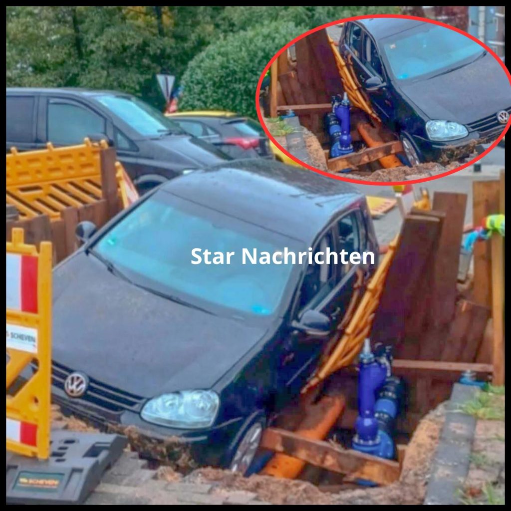 Rums! Spektakulärer Unfall mitten in der Stadt: Auto rauscht in Baugrube