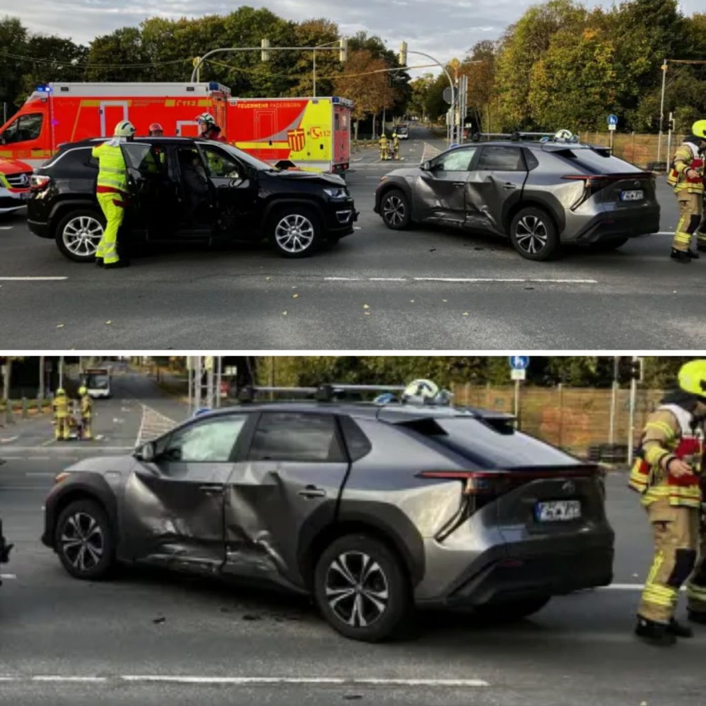 Am Sonntagmorgen, 19.10.2025, kollidierten in Paderborn (NW) zwei Autos auf der Kreuzung Berliner Ring / Driburger Straße. Fünf Personen wurden leicht verletzt, eine konnte ihr Fahrzeug zunächst nicht selbst verlassen. Die Feuerwehr befreite den Fahrer und sicherte die Unfallstelle.