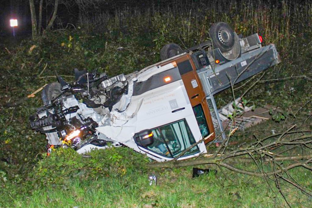 Schwerer Überschlag mit Promille: Pritschenwagen schleudert Böschung hinab und überschlägt sich – Fahrer hatte getrunken