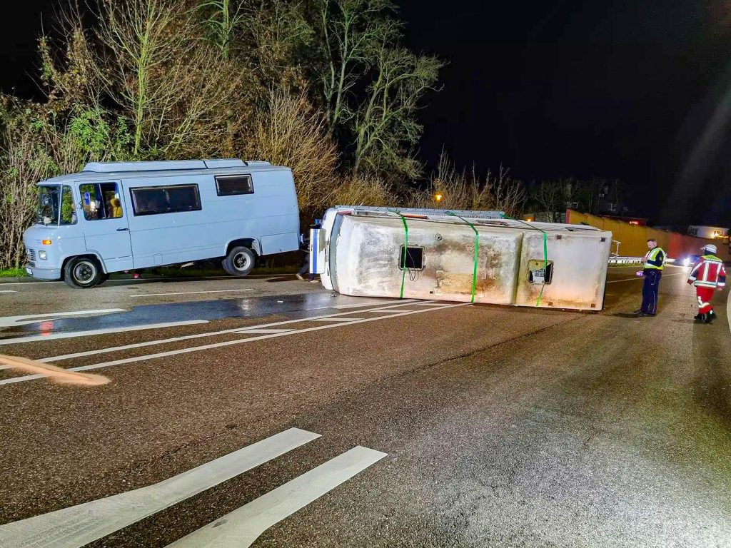 Schwerer Unfall auf B35 bei Bruchsal: Wohnmobil kippt von Anhänger – glücklicherweise keine Verletzten