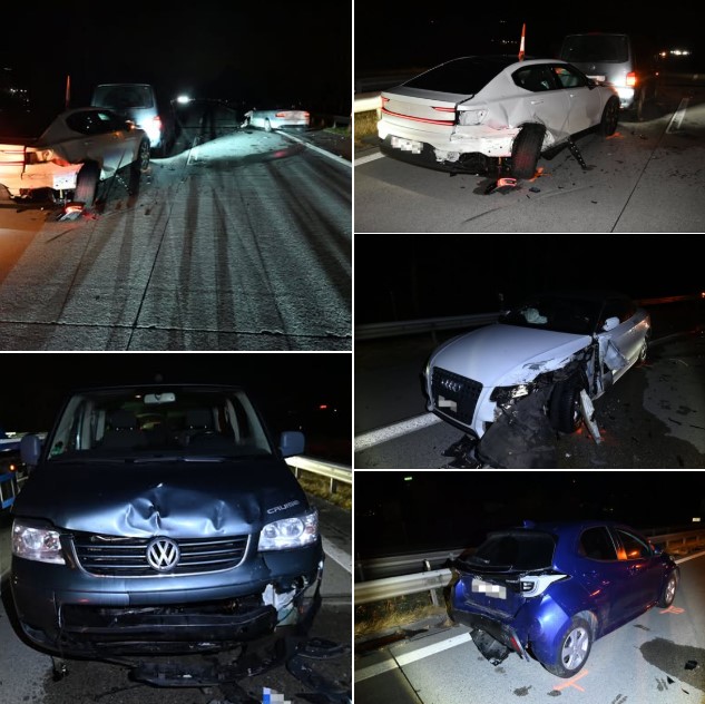 Die nachfolgenden drei Personen kollidierten trotz eingeleiteter Vollbremsung mit ihren Autos mit dem jeweils vorausfahrenden Auto.